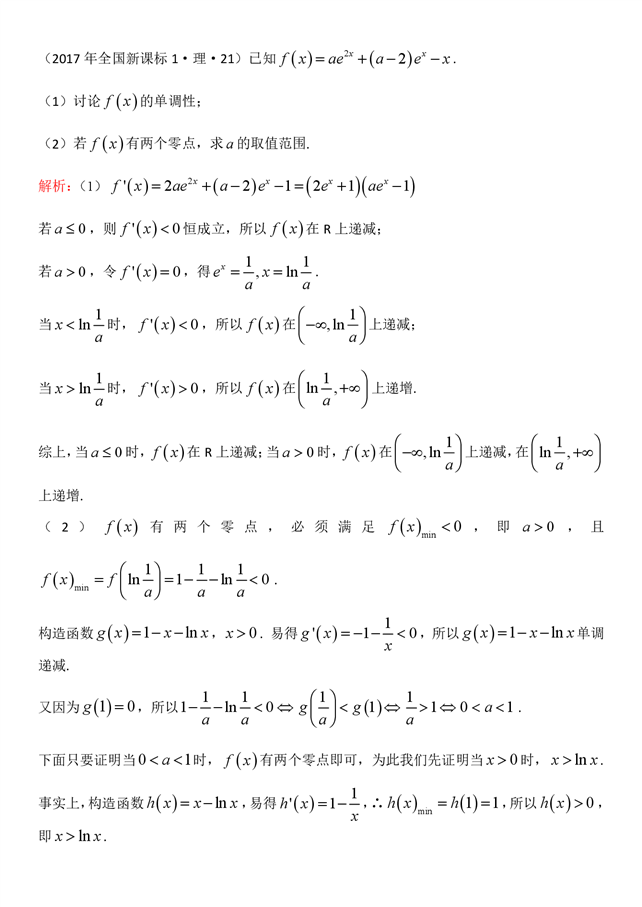 导数大题的常用找点技巧和常见模型