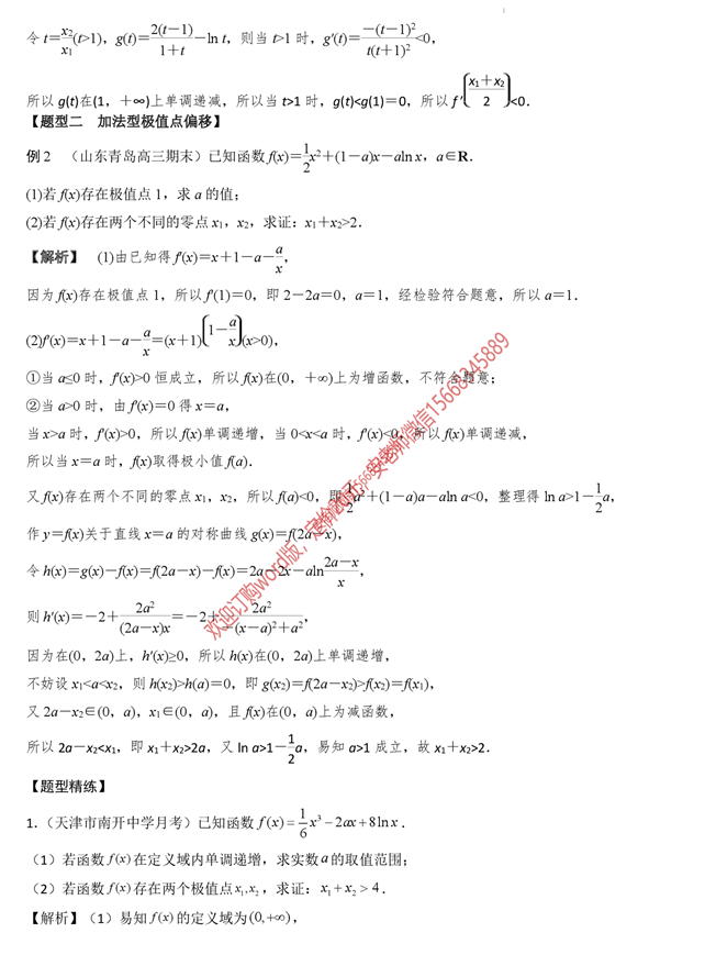 极值点偏移专题4之第二招---含参数的极值点偏移问题